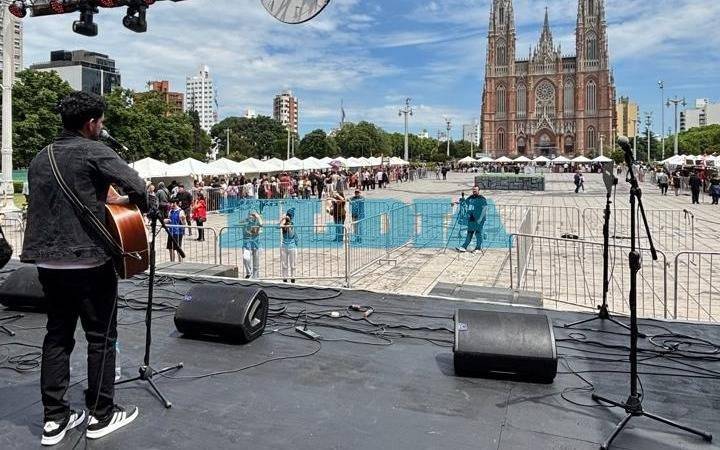 "Hasta las ocho o nueve de la noche podremos estar acá en Plaza Moreno", dijo desde el escenario la conductora del evento, Ayelén Toledo.