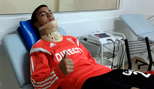 Lucas Rodríguez trabaja en kinesiología para recuperarse de la lesión que sufrió en la zona cervical luego del accidente de tránsito (iba como acompañante en el asiento trasero de un auto) que sufrió el fin de semana pasado y parece que el parate que deberá enfrentar será más largo de lo que se especulaba.