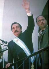 Una imagen de Raúl Alfonsín el día que asumió la presidencia de la Nación