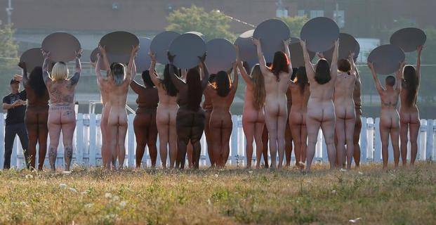 El fotógrafo hizo sus fotografías al amanecer en una propiedad privada para evitar problemas legales. “Mostrar un cuerpo desnudo en público es ilegal, pero en su lugar puede caminar con un arma sin estar preocupado. Me parece bastante extraño", manifestó Tunick.