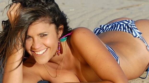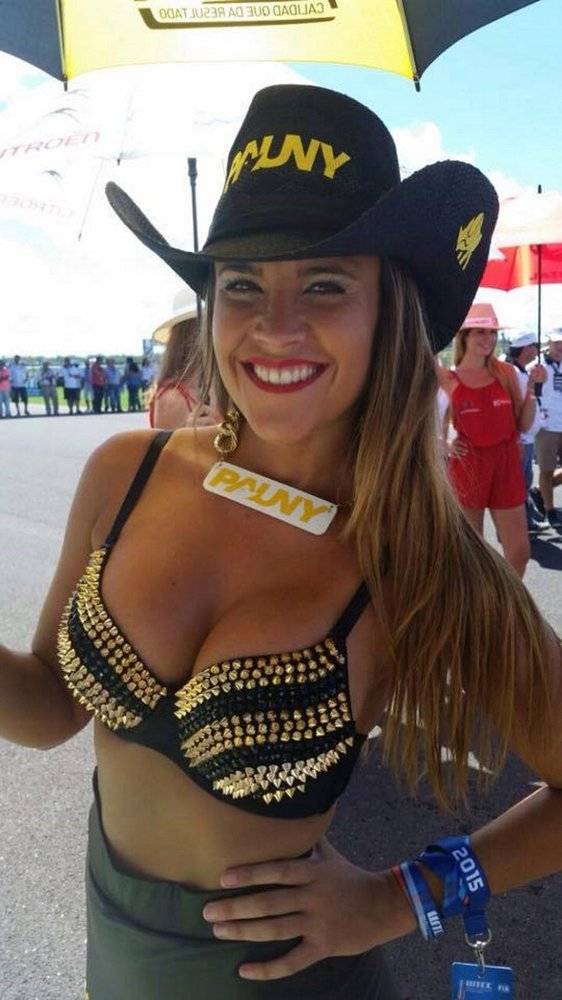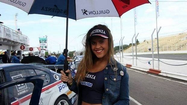 La joven, con sus sensuales curvas, sobresale en las carreras de automovilismo.