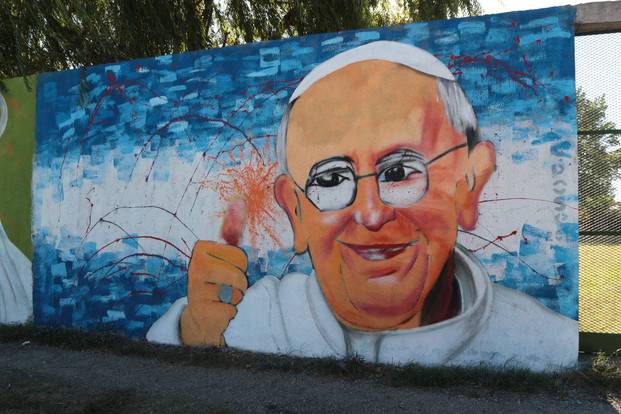 La imagen del papa Jorge Bergoglio se encuentra junto a las que el autor dedicó a la Madre Teresa de Calcuta y Nelson Mandela, cada una con una frase que alguna vez pronunciaron y que los identifica. Para Lumpen Bola, la idea de "plasmar tales líderes espirituales es la de captar la sensibilidad de las personas, sus creencias y el populismo de estos personajes, así como su significado para la cultura, la simbología en la que se inscriben, en definitiva, las características propias que los hicieron diferentes con sus vidas extraordinarias".