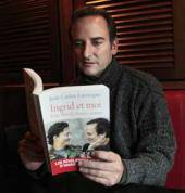Juan Carlos Lecompte con un ejemplar del libro sobre Ingrid Betancourt, en París