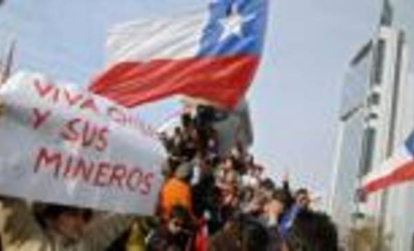 Ciudadanos chilenos festejan en las calles de Santiago la confirmación de que los mineros están vivos