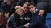 Un padre consuela a sus hijos tras el desenlace del partido de ayer en el Bosque
