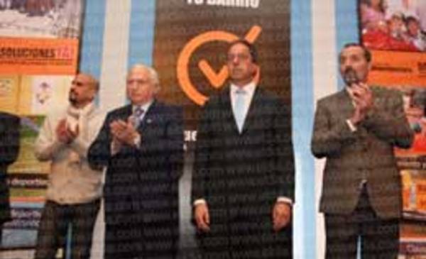 El gobernador Scioli junto a Héctor Delmar, Rubén Filipas y Sebastián Verón