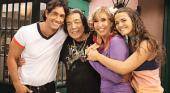 Cacho junto a su familia ficticia: Sebastián Estevánez, Georgina Barbarossa y Micaela Vázquez
