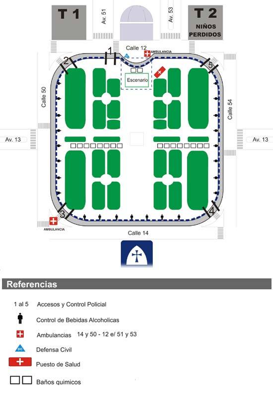 En el marco de los festejos previstos para mañana por el Día de la Primavera, la Municipalidad de La Plata publicó un plano con los accesos a Plaza Moreno, donde además se puede ver la ubicación de los distintos puestos instaladas para la ocasión.