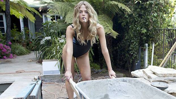 La joven modelo hizo una sesión de fotos en la que jugó a ser una obrera