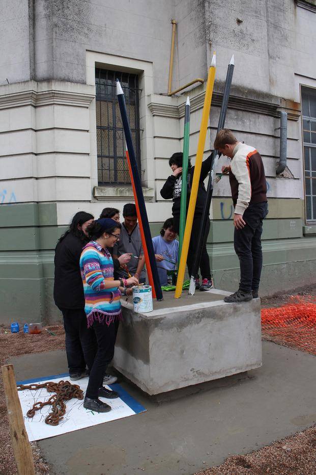 Ayer, mientras sus compañeros terminaban de pintar los lápices gigantes, el vicepresidente del centro, Agustín Cerdá, y la secretaria general, Leila Fallace Beltrán, contaron que “la idea nació en 2010, cuando presidía la organización la agrupación Recreatividad AT”.