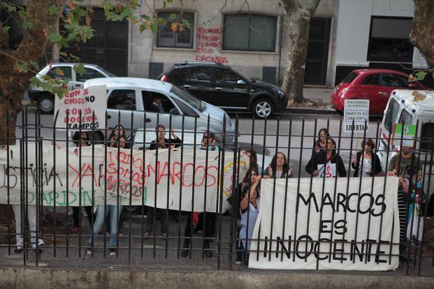 Docentes, familiares y amigos de Marcos Ledesma, el profesor de música de 37 años que enfrenta una causa judicial por presuntos ataques sexuales en un jardín de infantes de La Loma, marcharon hoy frente a la fiscalía platense, en 8, 56 y 57, en reclamo de "libertad y justicia".