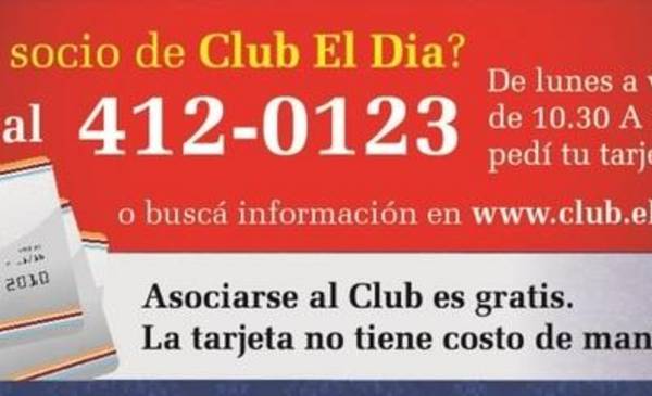 Importante es señalar que esta promoción de descuentos es SÓLO PARA SOCIOS. Por ello el CLUB EL DIA, lo invita a hacerse socio llamando al 412-0123.