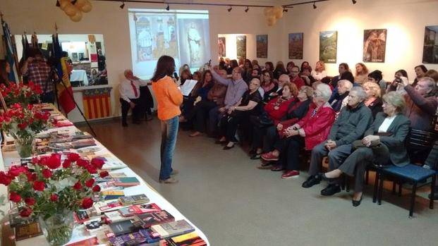 • El Casal de los Países Catalanes de La Plata celebró la Diada de Sant Jordi (Día del Libro y de la Rosa y del patrono de Catalunya). En la foto, Olga Serquera recita un poema de Josep María de Sagarra