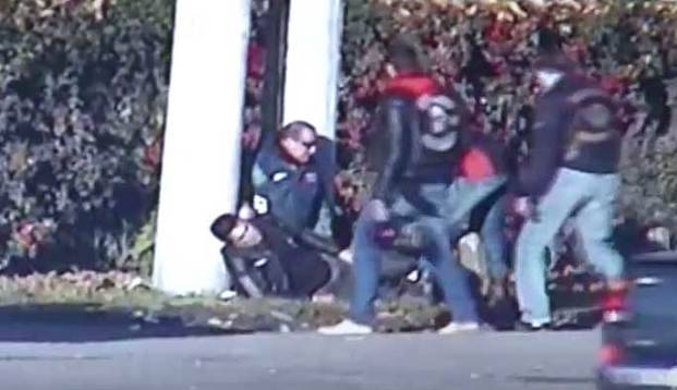 Además, el conductor de la camioneta de los Hell's Angels aceleró con la intención de escapar del lugar y atropelló a propósito a una mujer que aparentemente integraba el grupo de motoqueros rival.