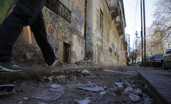 Una de cientos. La cuadra del colegio Liceo Mercante es apenas un ejemplo del estado de las veredas en la Ciudad. Rotas, llenas de pozos y desniveles, un martirio para los peatones