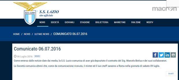 La información dada a conocer por el club italiano neutraliza versiones según las cuales se había producido un desencuentro entre la conducción de Lazio y Bielsa.