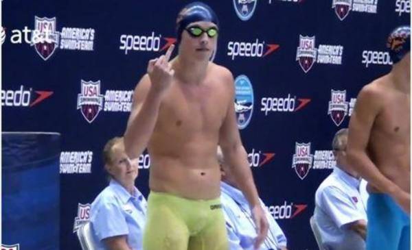 El nadador canadiense Santo Condorelli realiza un curioso saludo hacia su padre previo a cada competencia.