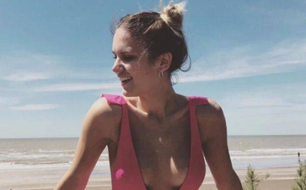 Eva Bargiela, ex novia de Facundo Moyano y azafata de Guido Kaczka compartió en las redes sociales sus fotos más sensuales, en la playa, con una malla enteriza color rosa.