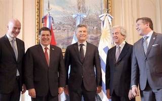 Infantino almorzará con el presidente de Argentina, Mauricio Macri, y los de Paraguay y Uruguay, Horacio Cartes y Tabaré Vázquez, para conocer en profundidad la propuesta de la candidatura conjunta de estos tres países para organizar el Mundial de 2030.