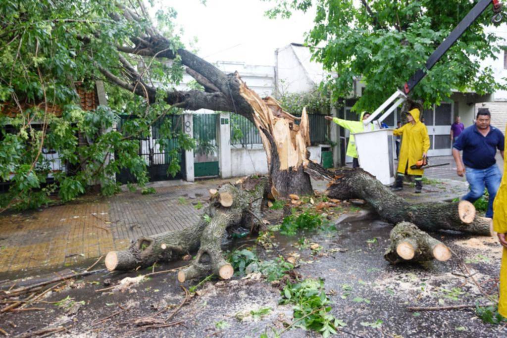 “En algunos puntos alcanzaron una velocidad de 60 kilómetros por hora”, puntualizaron los expertos. Y un árbol de gran porte dio fe de ello. El añoso ejemplar de 62 y 119 cedió y se quebró, lo que obligó a una cuadrilla a intervenir rápidamente para prevenir accidentes graves.