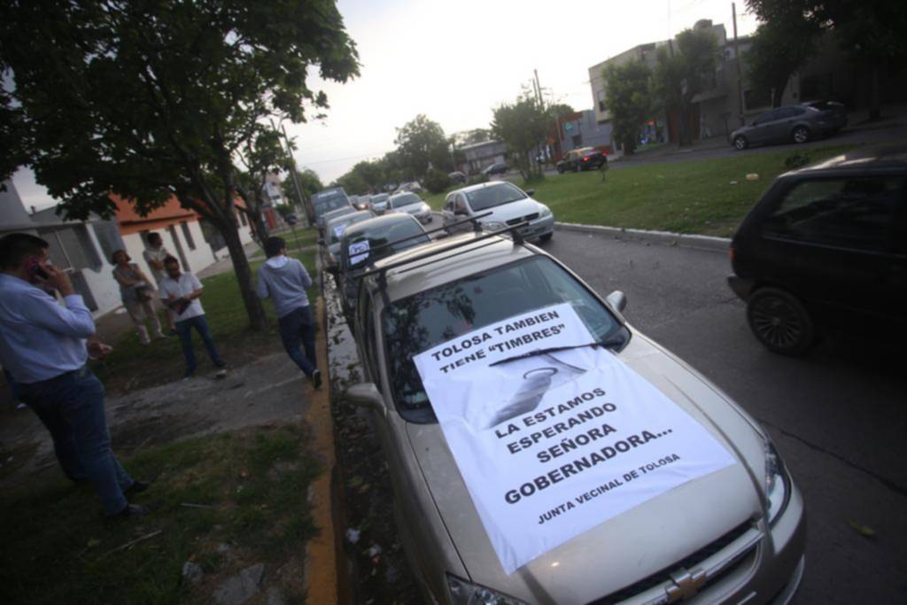 Igual de claros eran los carteles pegados en los autos: “Tolosa también tiene timbres, los esperamos, Sr. Ministro de Seguridad y Sra. Gobernadora”, en obvia referencia a los “timbreos” que hacen las autoridades. Otro cartel repetido fue el de un arma y un puñal tachados, como una señal de tránsito. “Basta de excusas” y “basta de robos a los escolares”, fueron otras dos consignas presentes.