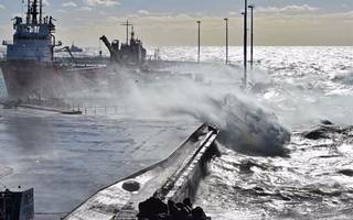 Mientras tanto, la corbeta Robinson se mantenía esperando para su ingreso a la dársena comodorense.