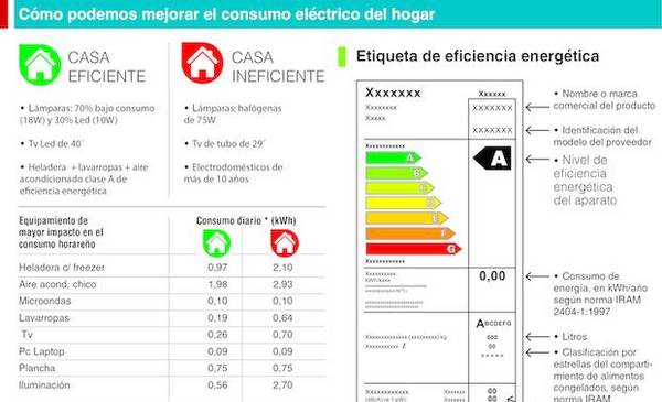 Comprar una heladera para la casa, un aire acondicionado, un lavarropas o bien un microondas, ya no sólo requiere de fijarse en la estética o el rendimiento duradero del motor y los materiales con los que está confeccionado el aparato. Desde la aplicación de los aumentos tarifarios, los consumidores comenzaron a prestarle mucha atención -según contaron los responsables de reconocidas firmas de electrodomésticos- al etiquetado de eficiencia energética, una tablita que va desde la letra A hasta la G que da la pauta del consumo de luz, siendo la A la de menor consumo y la G la de mayor.