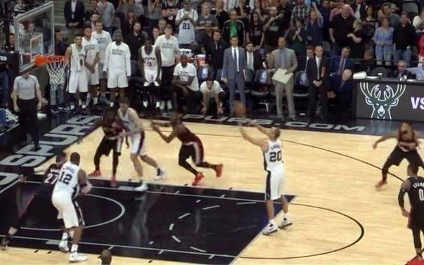 Manu Ginóbili no erra ni queriendo. El argentino de San Antonio quiso fallar un libre pero no le salió ya que el balón rebotó en el tablero y tras una parábola extraña terminó filtrándose en el aro.