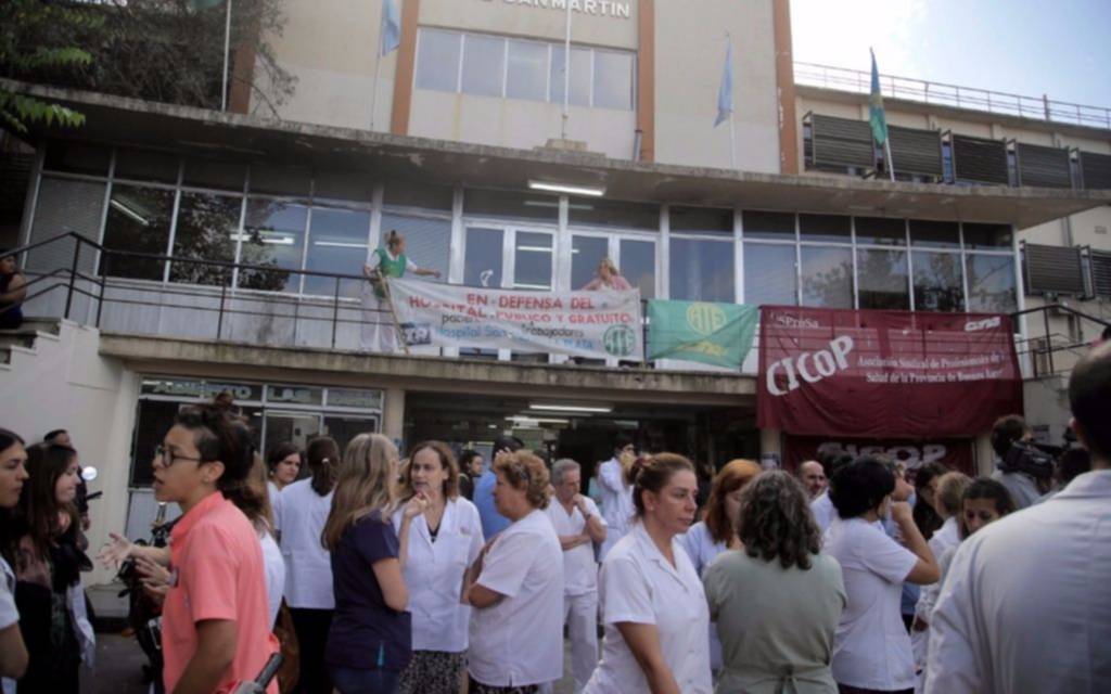 La comunidad médica de la Región se unió esta mañana en un abrazo simbólico al Hospital San Martín en protesta a la graves falencias edilicias y de servicios que presenta el nosocomio y para exigir medidas urgentes para paliar la crisis hospitalaria.