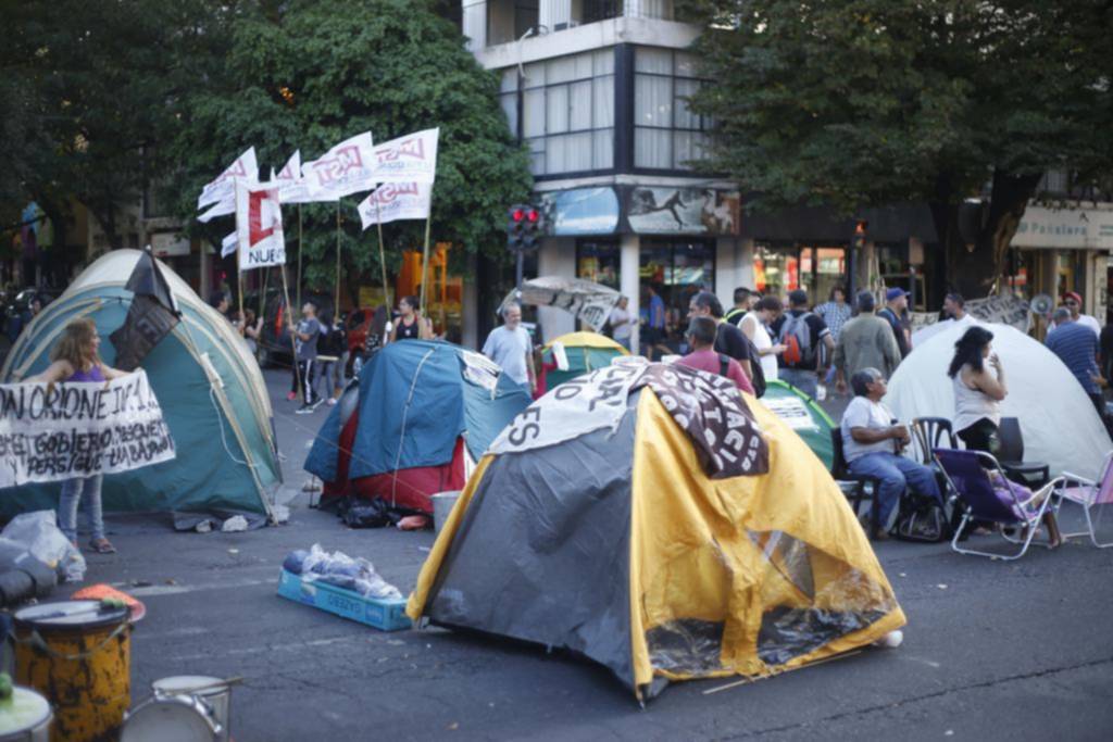 La esquina de 7 y 55 se convirtió desde ayer un improvisado campamento de manifestantes de organizaciones gremiales y partidos políticos que reclaman al gobierno provincial “el cumplimientode las leyes de promoción y protección de los derechos de niños y de responsabilidad penal juvenil”, además de otros planteos por la estabilidad laboral en el área de Niñez. La protesta continuará hoy.