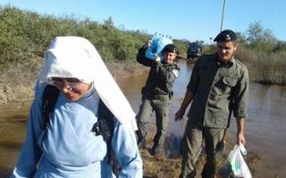 El intendente Campana explicó que las obras se realizaron junto a técnicos de Hidráulica para drenar parte del agua que cubre al 70 por ciento del distrito y que “de romperse las defensas, el agua entra a la ciudad, a los barrios bajos, carenciados, donde viven entre dos mil y tres mil personas”.