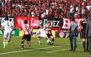 ¿Y el local? Manejó la pelota con prolijidad, de derecha a izquierda, con primera posesión de la dupla de doble cinco y luego con la estocada de Maxi Rodríguez o Joel Amoroso. Insinuó mucho pero concretó muy poco. También tuvo dos aproximaciones, pero ninguna al arco y las dos con Ignacio Scocco como protagonista: a los 6 minutos remató, junto al palo, ingresando al área por la izquierda de la defensa; y a los 44 minutos probó desde afuera, muy alto. Muy poco, de acuerdo a sus ambiciones.
