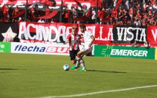 Aguirregaray, a la carrera, logró hacerse de la pelota. Estudiantes empató en cero con Newell’s - Gonzalo Mainoldi