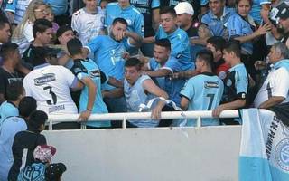 El momento en que Emanuel Balbo cae de la tribuna del estadio Mario Kempes. El hecho devolvió al centro de atención a la violencia en las canchas y en la sociedad - archivo
