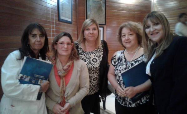 Las Dras. Miriam del Amo, María Mercedes Bolognani, Gladis Alfonso, Cleyde Gullo y Viviana Abbaticchio, presidenta del Comité de Bioética