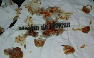 Por si todo lo narrado no bastara, cuando el lunes por la mañana salió de su vivienda, otra vez con destino a su oficina, encontró en la puerta de su coche y, en un corredor interno del inmueble, varios panfletos, con amenazas de muerte y manchas rojas, que simulaban sangre, pero que eran de ketchup.