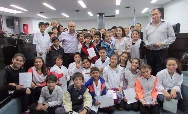 En esta oportunidad los alumnos de Sexto A y B de la EP Nº 30 del Bº Villa Argentina, junto a las docentes Laura león y Silvia Fernández; la señora vicedirectora Silvia Farisco y la bibliotecaria Analía Hatabian, interactuaron con el secretario Administrativo del HCD, Ariel D´Alessandro quien condujo el debate junto a Bernasconi