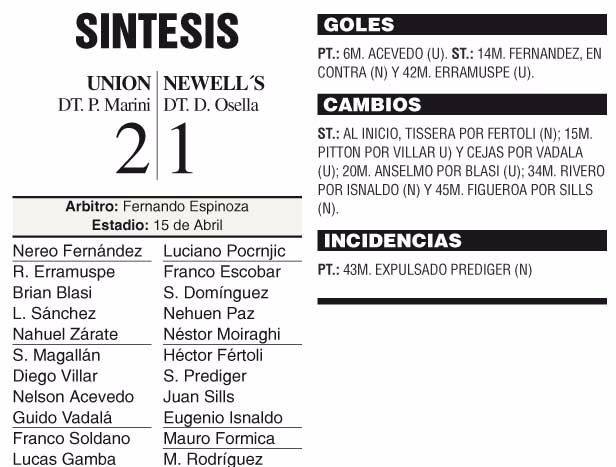 Newell´s, con la derrota (la cuarta en los últimos cinco partidos), se quedó con 48 puntos, cinco menos que el lìder Boca; en tanto que Unión, con la victoria (cortó una racha de ocho encuentros sin triunfos), llegó a 32 unidades.