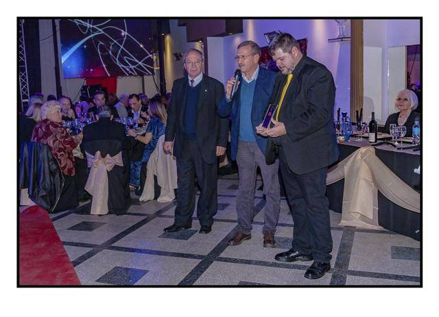 Amia-Daia La Plata, Berisso y Ensenada, entregó una placa de reconocimiento a la trayectoria de la entidad. En la foto, hablando Roberto Reichman, miembro de Amia, junto al presidente del Hogar Arabe de Berisso, Marcelo Joseff, y Daniel Ridner, de la comisión de Amia