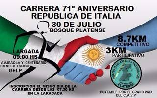 DOMINGO 20 DE AGOSTO 2017 - 08.00 HS - LARGADA CEF N° 2 - LA PLATA -TODA LA INFO EN EL EVENTO:FACE CIRCULO DE ATLETAS VETERANOS PLATENSE/ CAVP eventosINSCRIPCIÓN ANTICIPADA CON RETIRO DE KITS: SÁBADOS 12 Y 19 DE AGOSTO DE 09.00 A 15.00 HS FRENTE AL ESTADIO GELP - BOSQUE PLATENSE -INSCRIPCIÓN ON LINE POR EVENTBRITE INSCRIPCIÓN EL MISMO DIA DE LA CARRERA DESDE LAS 06.30 HS EN LA LARGADA: CEF N° 2 AV. 32 Y CALLE 23 (AL LADO DEL ESTADIO ÚNICO DE LA PLATA)