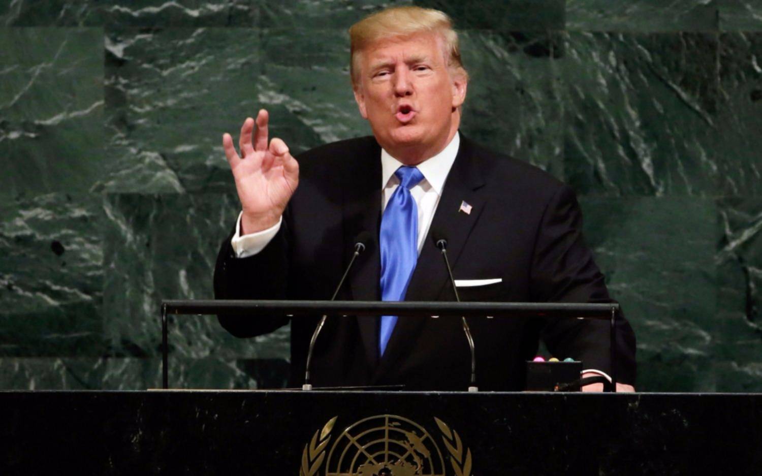 "Como presidente de Estados Unidos, siempre pondré a Estados Unidos primero, igual que ustedes, como líderes de sus países, siempre pondrán y deberían poner a sus países primero", instó Trump a los mandatarios reunidos en la ONU, en su primera intervención ante la Asamblea General del organismo.