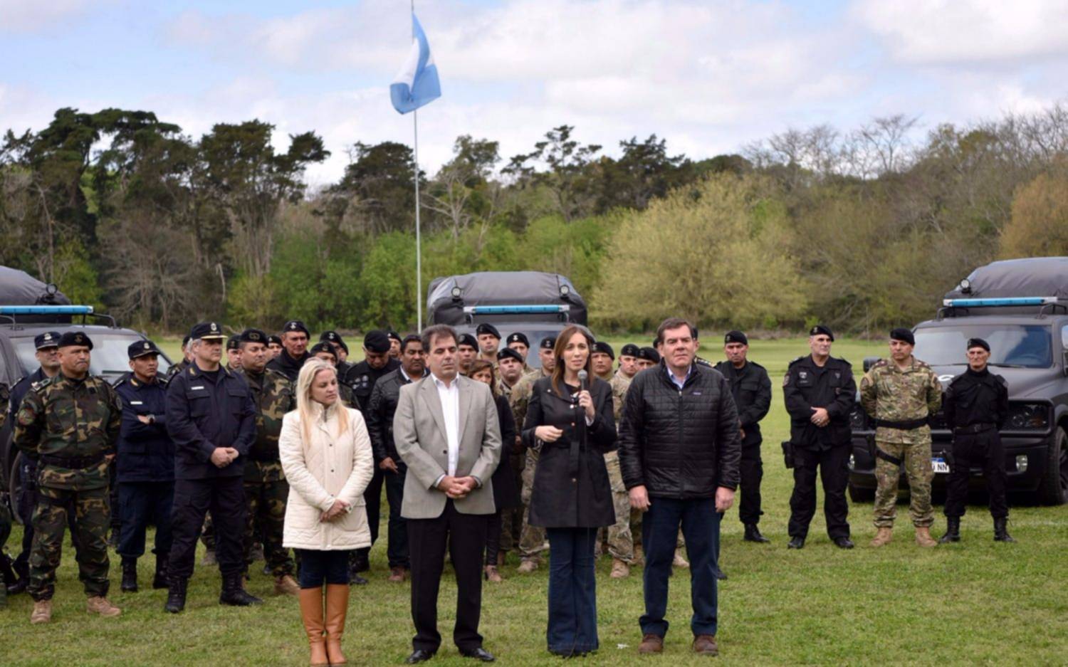 En Berazategui, la gobernadora dialogó con agentes del Grupo Halcón junto al ministro de Seguridad bonaerense, Cristian Ritondo; al candidato a diputado nacional Guillermo Montenegro, y a la postulante a diputada provincial Carolina Piparo.