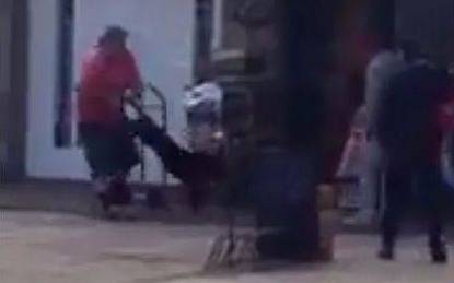 El incidente, precisamente, quedó registrado en un video casero, que puede observarse en eldia.com y en el que se ve una tremenda situación. La imagen arranca con dos perros peleándose. Entran en plena riña en una verdulería, un joven le pega patadas a los perros para separarlos y otro aparece luego tomando al pitbull de las dos patas traseras y lo lanza al aire. El perro cae como si nada hubiera pasado y emprende la caminata hacia 523, seguido por un efectivo policial que tenía una escopeta con cartuchos de goma.