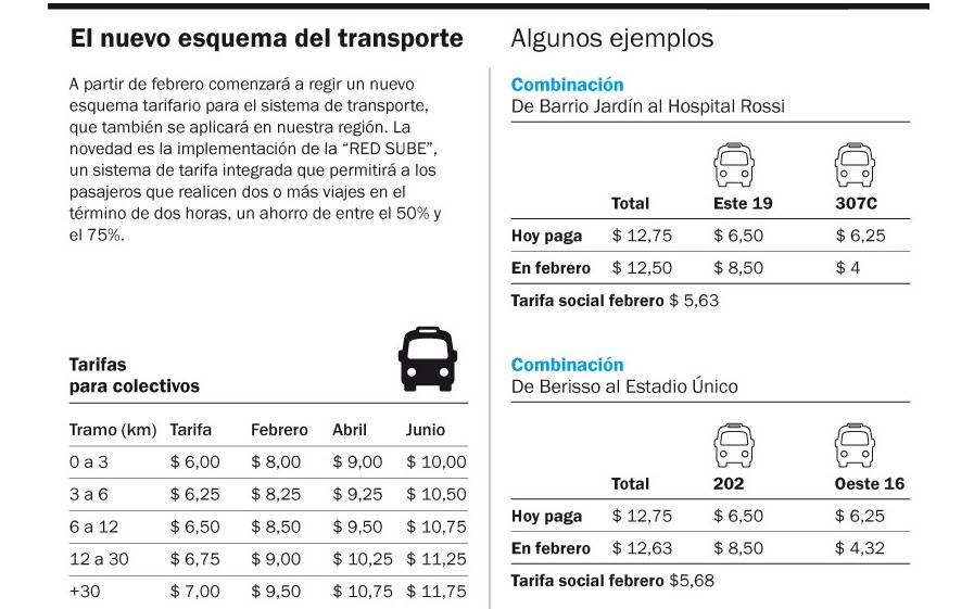 Con respecto a los micros de media distancia aún no trascendió oficialmente la medida que se adoptará. Actualmente, viajar de La Plata a Buenos Aires por el Centenario cuesta 22 pesos con la tarjeta SUBE en las dos empresas que prestan el servicio, y quienes lo hacen por la Autopista el precio va a los 38 pesos. Lo que se informó ayer en la cartera de Transporte es que estas empresas realizarán un descuento de hasta 8 pesos por tramo. Por ejemplo, si un usuario viaja en micro hasta la terminal de Ómnibus, y luego toma uno de los servicios de media distancia, sobre la tarifa que regirá en febrero se le descontarían el equivalente a un boleto mínimo de ocho pesos.