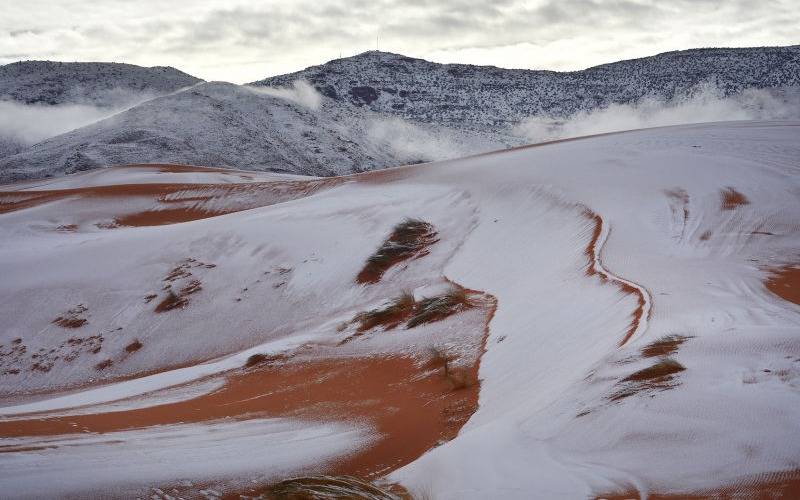 Este fenómeno no ocurría desde 1979, y las fotos de la ultima nevada son deslumbrantes: enormes dunas y un inmenso desierto cubiertos de blanco.