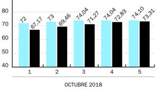 La coronación de este paquete monetario fue también la fijación de un piso mínimo del 60% a las tasas de referencia, que de todas formas crecieron a lo largo de la emana hasta el 73,31 por ciento de promedio, aunque con una tasa de corte del 74,10 por ciento, lo que a lo largo de la semana se tradujo en una caída de algo más del 7% en el valor del dólar, que el viernes cerró a $ 38,91, luego de haber superado largamente los $ 41, los días previos.