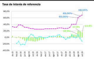 Las Leliqs son lo que más crece en toda la economía, se utilizan como encaje de los depósitos a plazo fijo. Pero las Leliqs crecen más rápido que los depósitos a plazo fijo y ganan peso relativo en relación a los depósitos a plazo. Puntualmente, el peso de las Leliq en relación a los depósitos a plazo privados sube sostenidamente de 21,1% (julio); a 40,6% (agosto); 56,2% (septiembre) y 61% (octubre).
