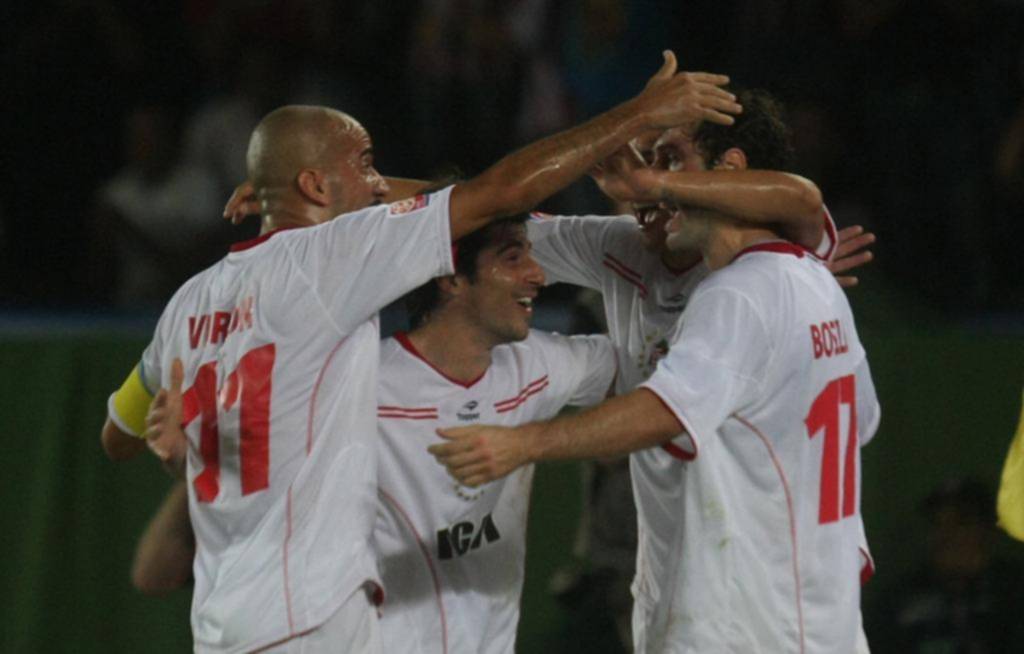 Sabella, que estuvo meses pensando en cómo hacerle frente a semejante equipo, puso en cancha a: Albil; Cellay, Desábato, Ré, Díaz, Clemente Rodríguez; Pérez, Braña, Verón, Benítez; y Boselli.