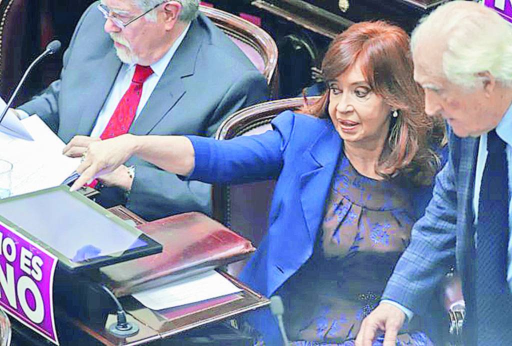 Cristina kirchner, durante la última sesión del senado conversando con Pino solanas/Prensa Senado