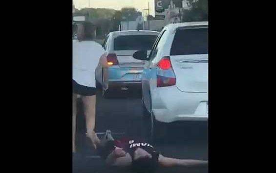 Una parte de la escena fue captada por una conductora y en las imágenes se puede ver a los dos vehículos acelerando rápidamente y a la mujer del hombre golpeado tratando de detener a uno de ellos.